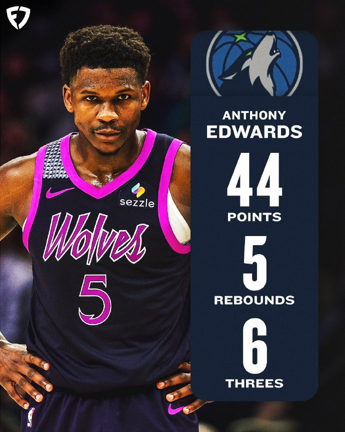 爱德华兹依旧非常给力,打了47分钟,30投16中,三分13中6,罚球8中6,砍下44分外加5篮板4助攻1盖帽,得分创个人赛季新高,正负值+14也是全队最高。过去6场比赛,爱德华兹状态都相当火热,已经连续6场比赛得到30+,追平乐福保持的队史纪录,并列第一。