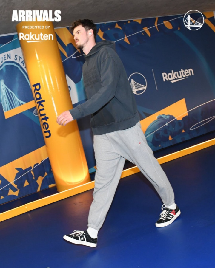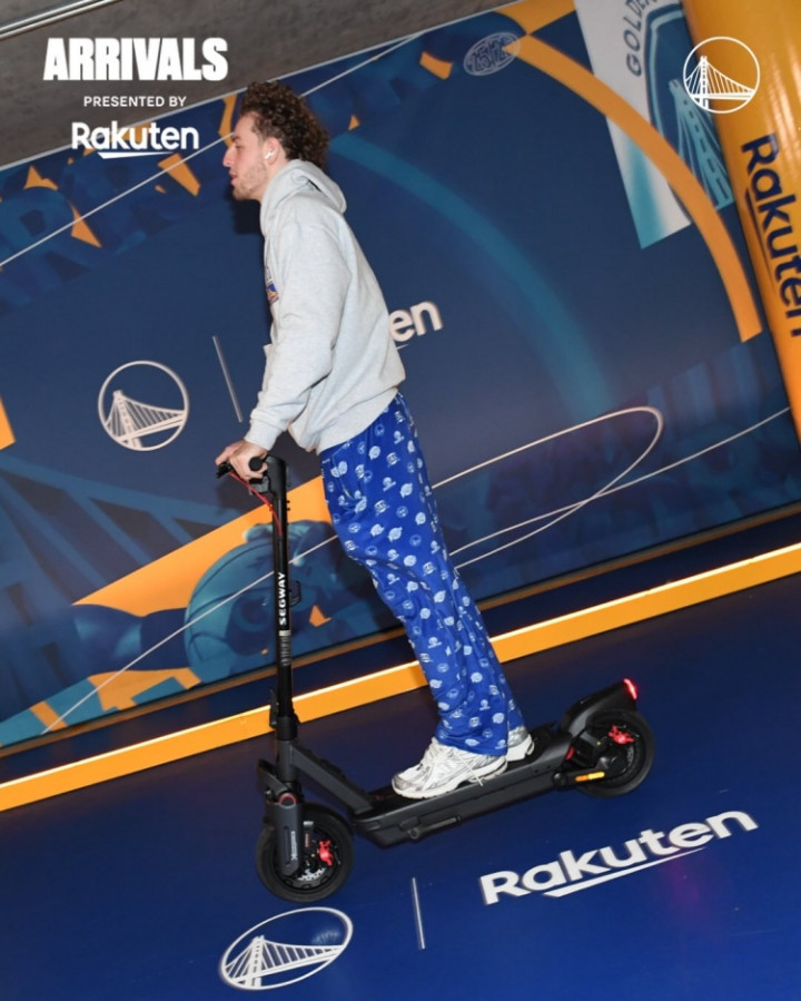 勇士男模队进场! 库里花式乱穿鞋 波杰姆斯基脚踏滑板车