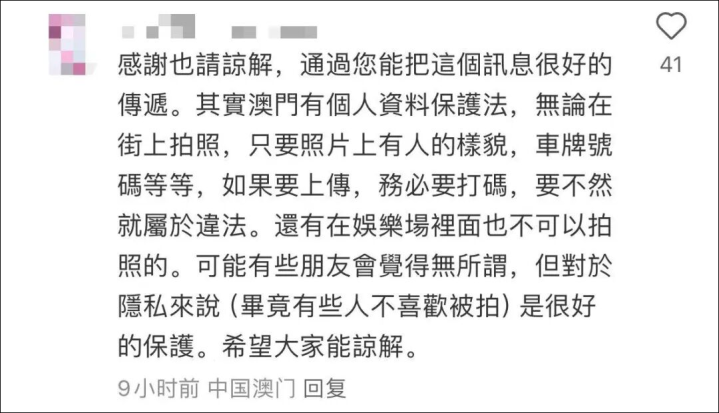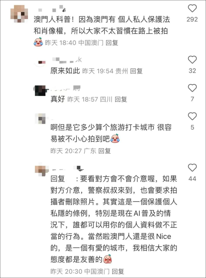 有澳门网友在评论区“科普”称,澳门有相关法律保护个人隐私,所以大家不太习惯在路上被拍。也有不少网友称,被李现科普到,涨知识了。