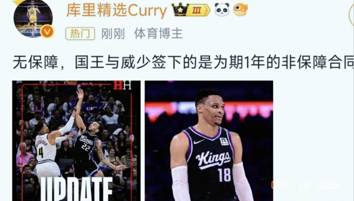 在23年的时候,威少还能从湖人这里领取一份4000万的年薪,而短短的2年时间,威少已经沦落到无球可打的地步,以一份360万美元的老将底薪加盟国王,而根据后续的进一步消息报道,威少与国王签订的,只是无保障合同,也就是说国王随时可以裁掉威少。